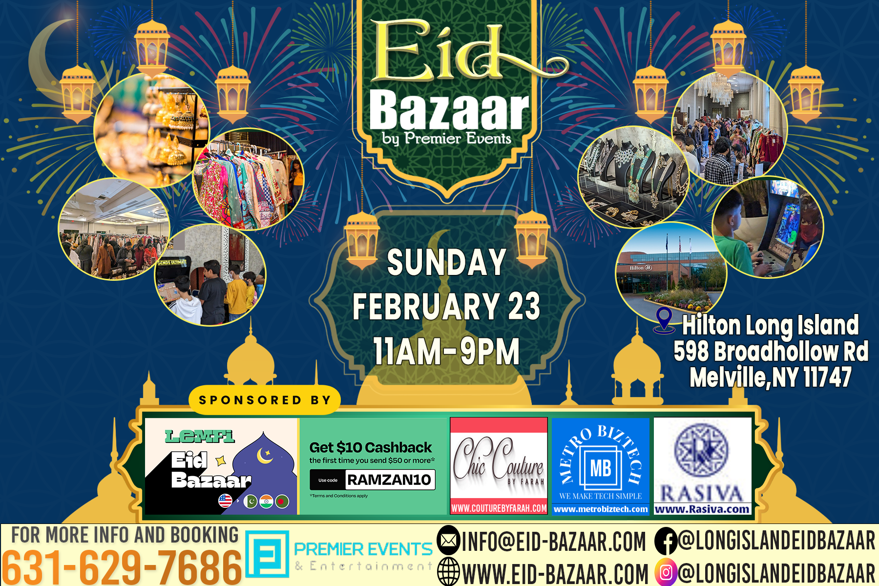 ]]>Join Us SUNDAY FEBRUARY 23rd 2025 for a Pre-EID BAZAAR by Premier Events at the Hilton Long Island located at 598 Broadhollow Road, Melville, NY 11747 from 11am – 9pm.