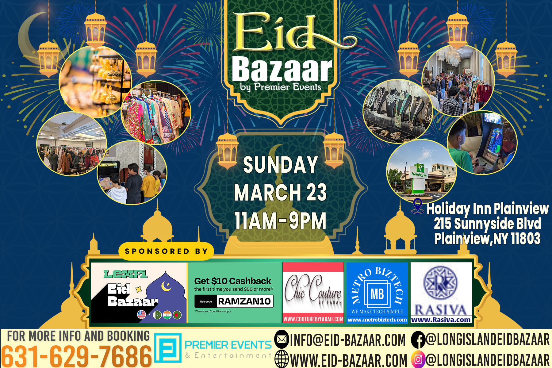 ]]>Join Us SUNDAY MARCH 23rd 2025 for a Pre-EID BAZAAR by Premier Events at the Hilton Long Island located at 215 Sunnyside BLVD, Plainview, NY 11803 from 11am – 9pm.
