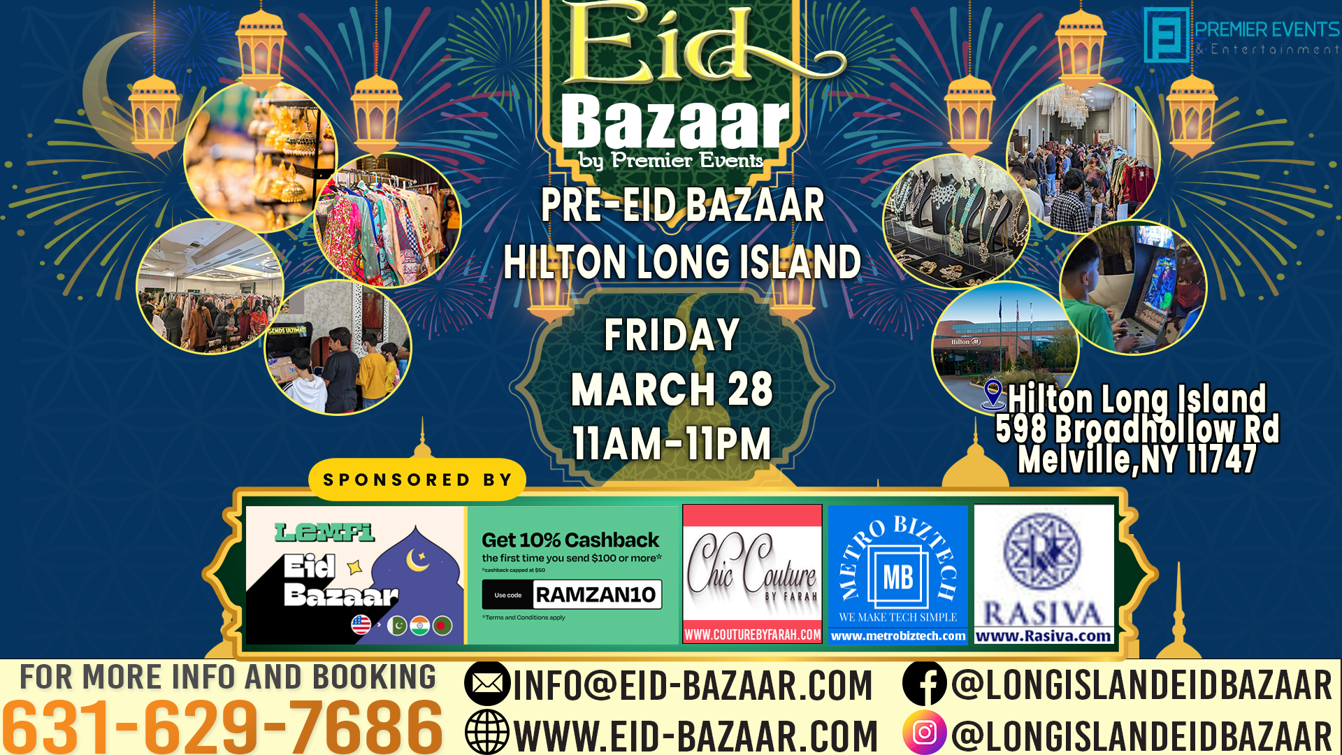 ]]>Join Us FRIDAY MARCH 28th 2025 for a Pre-EID BAZAAR by Premier Events at the Hilton Long Island located at 598 Broadhollow Road, Melville, NY 11747 from 11am – 11pm.