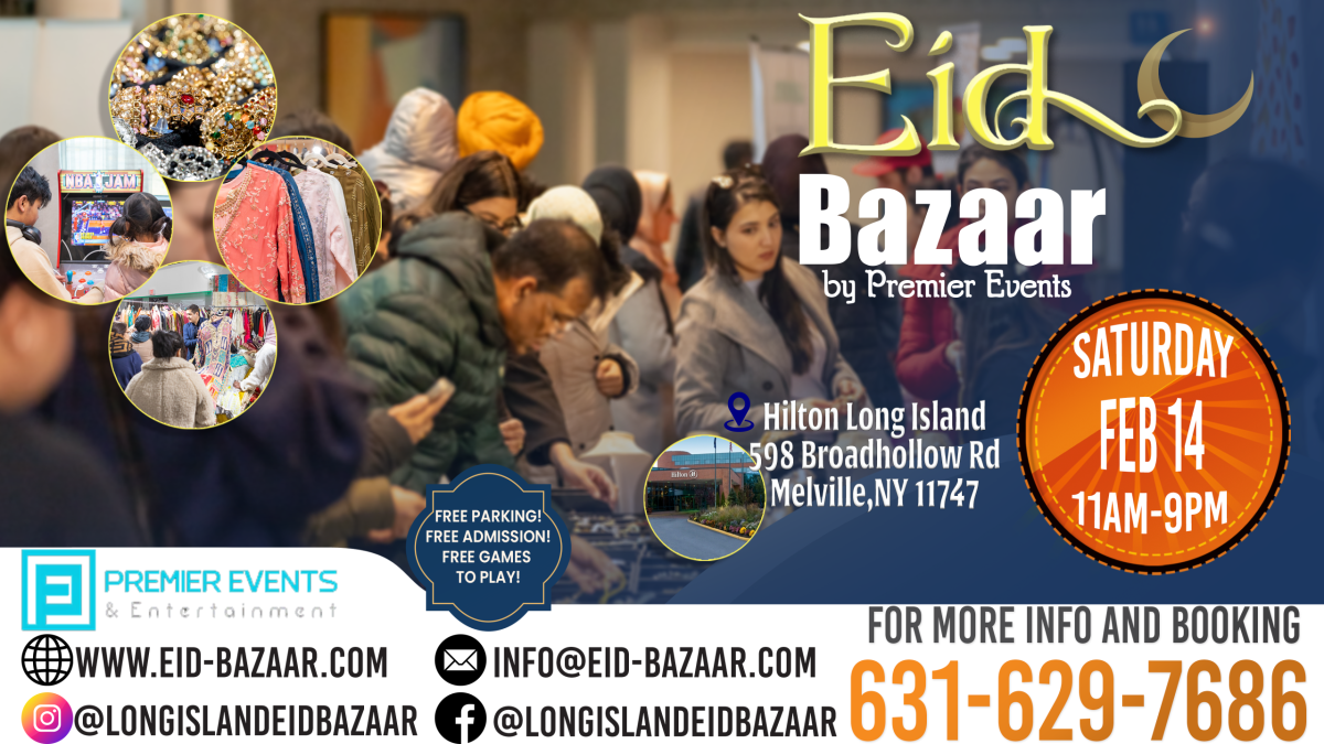Find Something You Love! ✨ Pre-Eid Bazaar at the Long Island Hilton – Melville ✨ 🗓 February 14, 2026 ⏰ 11:00 AM – 9:00 PM 📍 Long Island Hilton, Melville View More