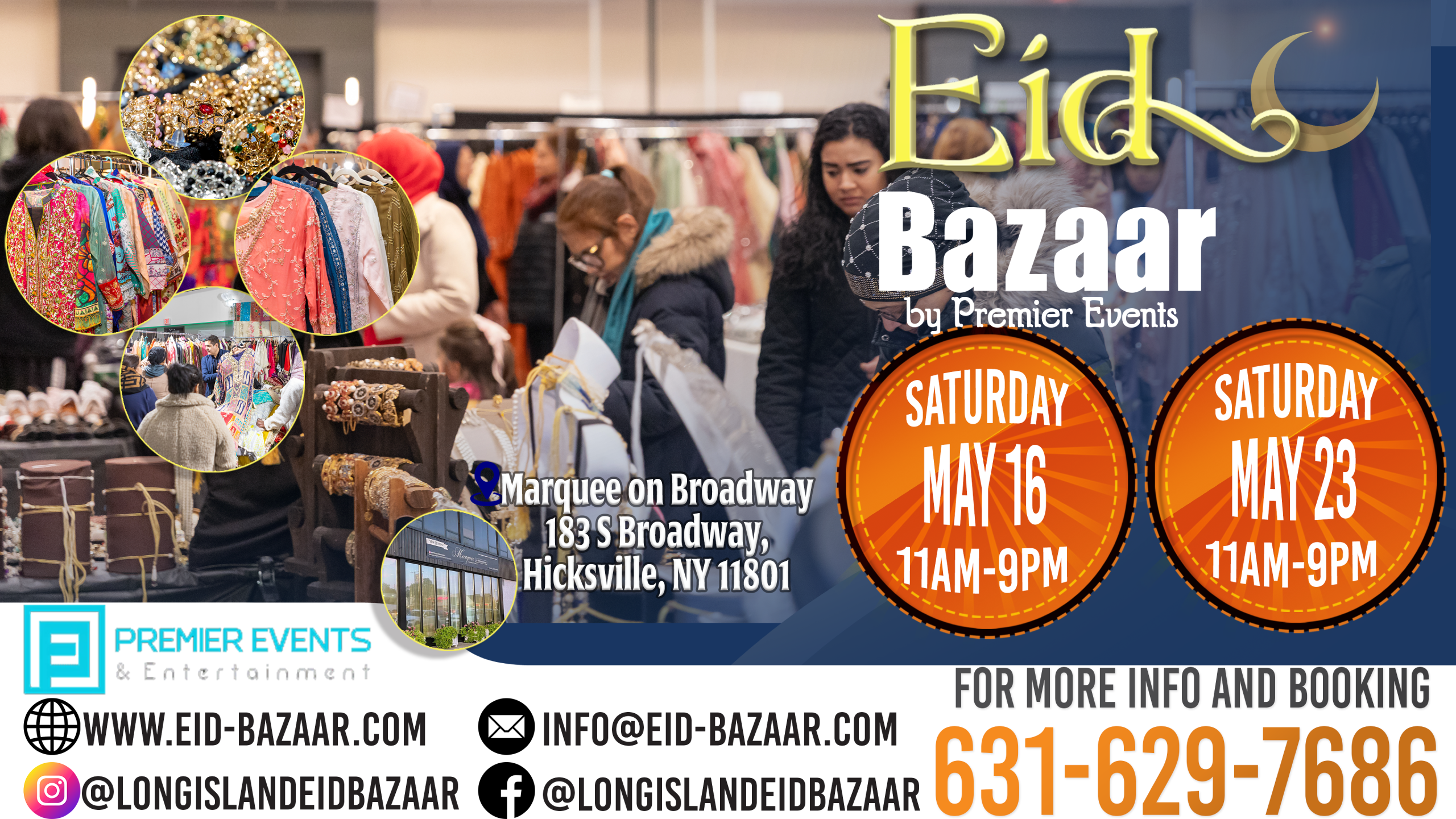 ]]>Join Us SATURDAY May 16th 2026 for a Pre-EID BAZAAR by Premier Events at Marquee on Broadway located at 183 S Broadway, Hicksville, NY 11801 from 11am – 9pm.